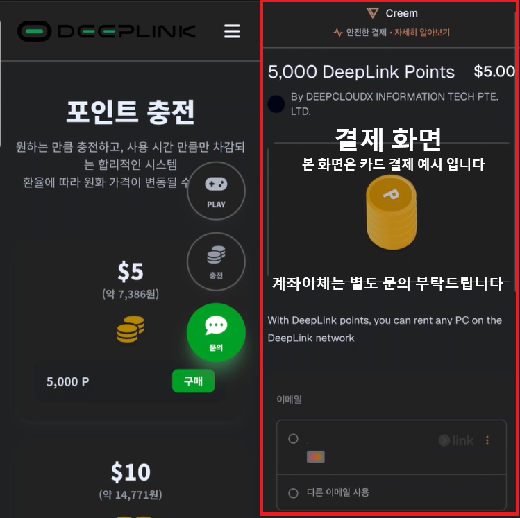 페이지로 넘어가며 원하시는 포인트를 선택하시고 구매 버튼을
